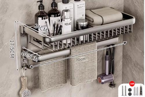 აბაზანის დასამონტაჟებელი ალუმინის თარო ტანსაცმლის, პირსახოცებისთვის 70სმ