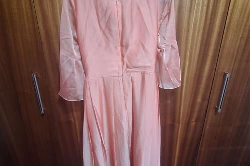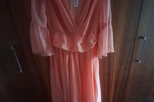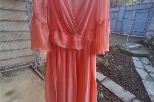 ატმისფერი კაბა , შიფონის სარჩულით, გრძელი, წელზე პლისების გამოყვანა სჭირდება უთოთი, მ ზომა ( 60-65 კგ) იდეალურ მდგომარეობაში ფასი 50ლ