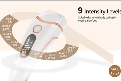 【9 ენერგიის დონე】: ამ IPL თმის მოცილების მოწყობილობას აქვს 9 რეგულირებადი ენერგიის დონე, რომელიც შესაფერისია კანის სხვადასხვა მგრძნობელობისა და სამკურნალო ზონებისთვის. 2 ღილაკის დიზაინი, მარტივი გამოსაყენებელი და რეგულირებადი სიმძლავრის დონე და რეჟიმი. და აღჭურვილია დიდი LCD დისპლეით, შეგიძლიათ მკაფიოდ აკონტროლოთ გამოყენებული ოპერაციული პარამეტრები.