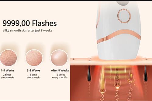 【უმტკივნეულო თმის მოცილება】: IPL ეპილატორი შექმნილია 999,900 ციმციმით, იყენებს პროფესიონალურ IPL (ინტენსიური პულსირებული სინათლის) ტექნოლოგიას თმის ძირების სპეციფიკური დამუშავებისთვის, თმის ზრდის ციკლის შესაწყვეტად და კანის დაზიანების ეფექტურად თავიდან ასაცილებლად. მისი როლია თმის ფოლიკულების დამიზნება, სინათლის ენერგიის ძირებზე კონცენტრირება, მელანინის შთანთქმა და თმის ზრდის შეფერხება.