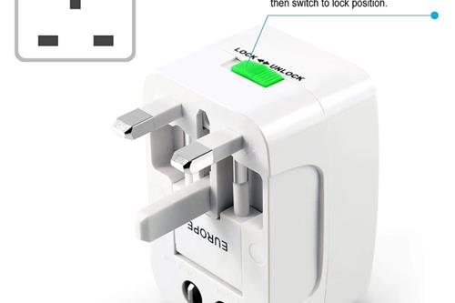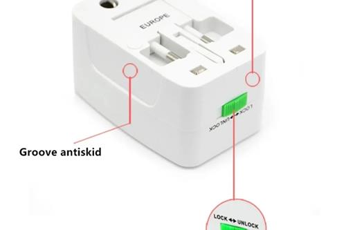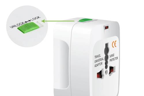 საერთაშორისო უნივერსალური 100-250V შტეფსელის ადაპტერი სამოგზაურო