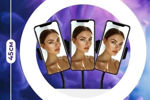 დიდი ფორმატის განათება: 45 სმ-იანი რგოლი სახეს თანაბრად აშუქებს, რაც იდეალურია პორტრეტული გადაღებისა და მაკიაჟისთვის.