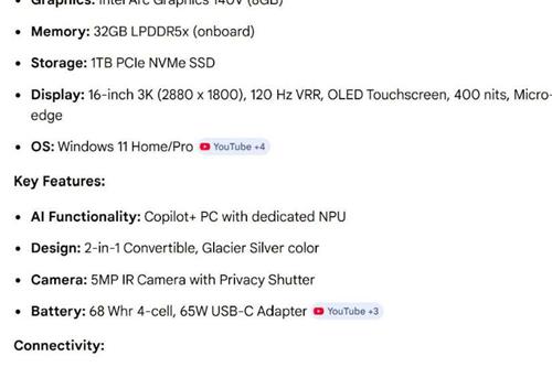 ძალიან ძლიერი მონაცემები. ეკრანი - TOUCH, იკეცება სრულად 360 გრადუსი. და ხდება როგორც პლანშეტი. მოყვება თავისი პასტა, რომელიც იტენება და მაგნიტურად მაგრდება ლეპტოპზე, რომლითაც შეძლებთ ხატვას და მუშაობას. კლავიატურის განათება, სტერეო დინამიკები და ა.შ.