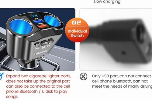 66W სწრაფი დამტენი QC3.0+2.4A დამტენის სოკეტი სიგარეტის სანთებელა ფასი 25 ლარი უფასო მიწოდება სამედიცინო მეტროსთან იმავე დღეს. 5 ლარი სახლში მიწოდება 2 დღეში. 66W სწრაფი დამტენი QC3.0+2.4A დამტენის სოკეტი სიგარეტის სანთებელა გამყოფი 12V/24V ორმაგი USB PD მანქანის სიგარეტის სანთებელა სპლიტერი Პროდუქტის აღწერა პროდუქტის დასახელება: One Drive Two 66W მანქანის Bluetooth დამტენი დატენვის ინტერფეისი: USB1: QC3.0 5v/4.8A USB2: 5V/2.4A ხმოვანი ასისტენტი: მხარს უჭერს ხმოვანი ასისტენტის ფუნქციას ერთი დაწკაპუნებით ჩართვა/გამორთვა: მხარს უჭერს ერთი დაწკაპუნებით რბილ გამორთვას და შეიძლება ჩართოთ ნებისმიერი ღილაკით FM ფუნქცია: მხარს უჭერს FM სტერეო გადაცემის ტექნოლოგიას USB დისკი/TF ბარათი: მხარს უჭერს USB დისკის დაკვრას დაკვრის ფორმატი: მხარს უჭერს WMA, MP3, WAV, FLAC მუსიკალური ფორმატის ფაილებს Bluetooth თავსებადი ფორმატი: Bluetooth მხარს უჭერს A2DP, AVRCP, HFP, HSP Hands-free ფუნქცია: Bluetooth თავსებადი უკონტაქტო ზარი სტერეო: მხარს უჭერს Bluetooth თავსებადი სტერეო მუსიკის DSP-ს ტექნიკური სიხშირე: 87,5-99,9 მჰც მასალა: ABS წონა: 70 გ Ფერი შავი