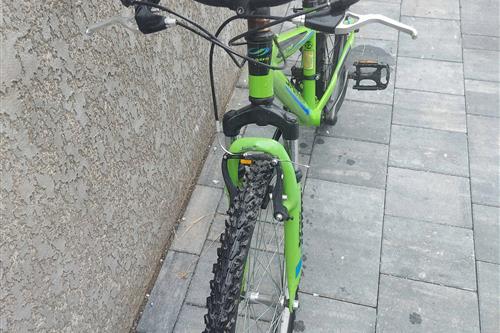 შავი ფერის ველოსიპედს აქვს მცირე ნაკაწრები