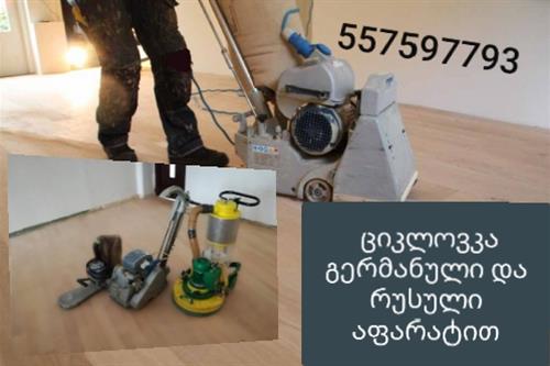• პარკეტის ციკლოვკა (დაპრიალება და ლაქის დაგდება)