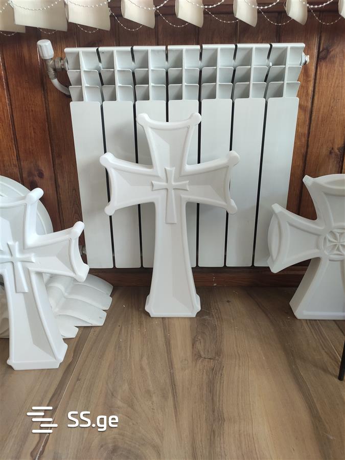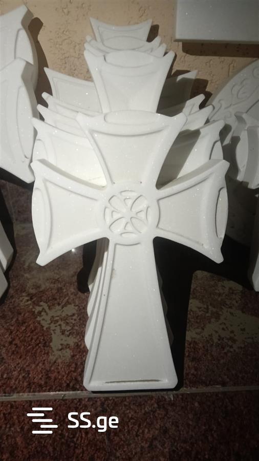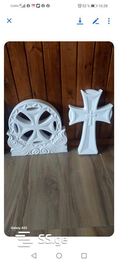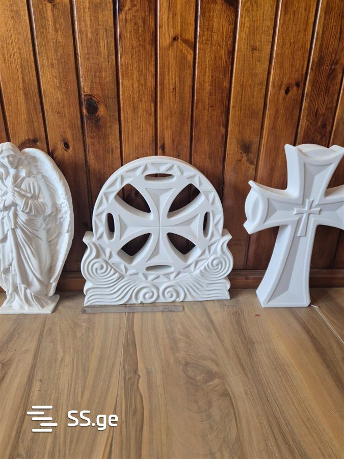 ქანდაკება, ჯვარი , ხატი , წიგნი ,წარწერა, სასანთლე , კიბე , ბუხარი , პანო , კოლონა , გორელიეფი , ბარელიეფი და ასე შემდეგ .