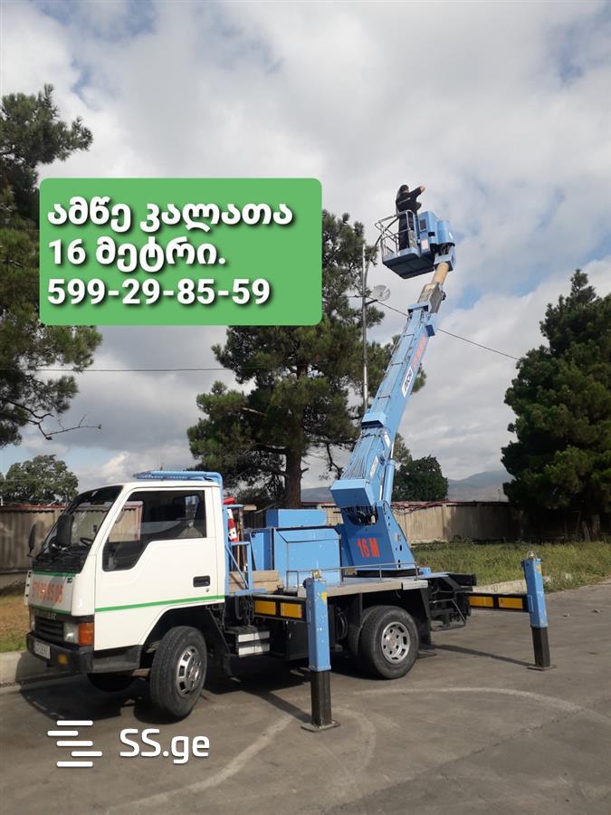 ამწე კალათებით მომსახურება, 16 მეტრიანი, როგორც დღიურად ისე საათობრივად. Show original
