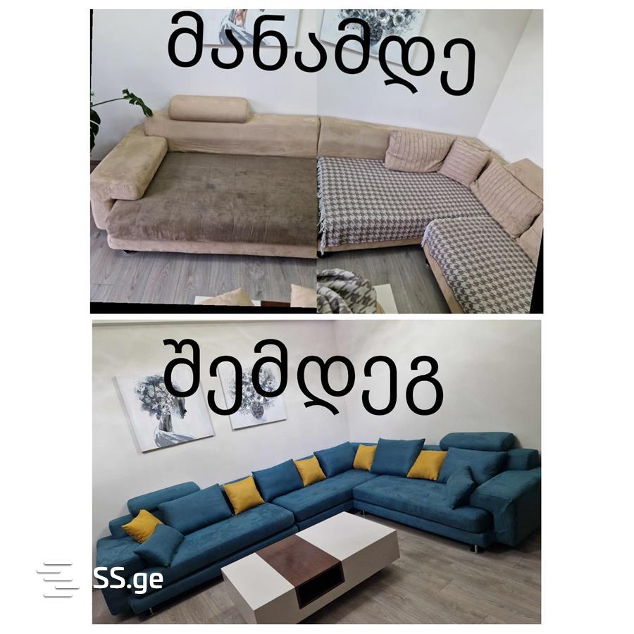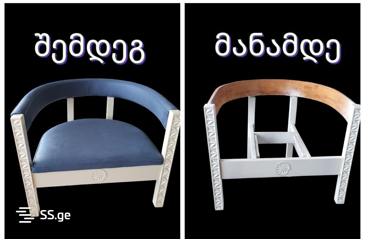 გთავაზობთ ავეჯის რესტავრაციას, კუთხის ან ჩვეულებრივი დივან სავარძლის დამზადება რესტავრაცია, ქსოვილის შეცვლა, ტყავის სამეულების შეკერვა, შეღებვა. მაგიდა სკამების გამაგრება, ხის დამუშავება, შეღებვა, რესტავრაცია. ასევე კლინიკის, რესტორნის, ბარების, საოფისე და სხვადასხვა დაწესებულების ავეჯის დამზადება რესტავრაცია ადგილზე მიტანით ფოტოზე ყველა ჩვენი ნამუშევარია ტელ 599 692-993 Show original
