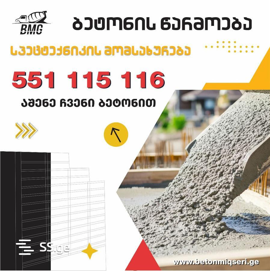 კომპანია BMG გთავაზობთ ბეტონის წარმოებას, სპეცტექნიკის მომსახურებას თბილისსა და შემოგარენში. Show original