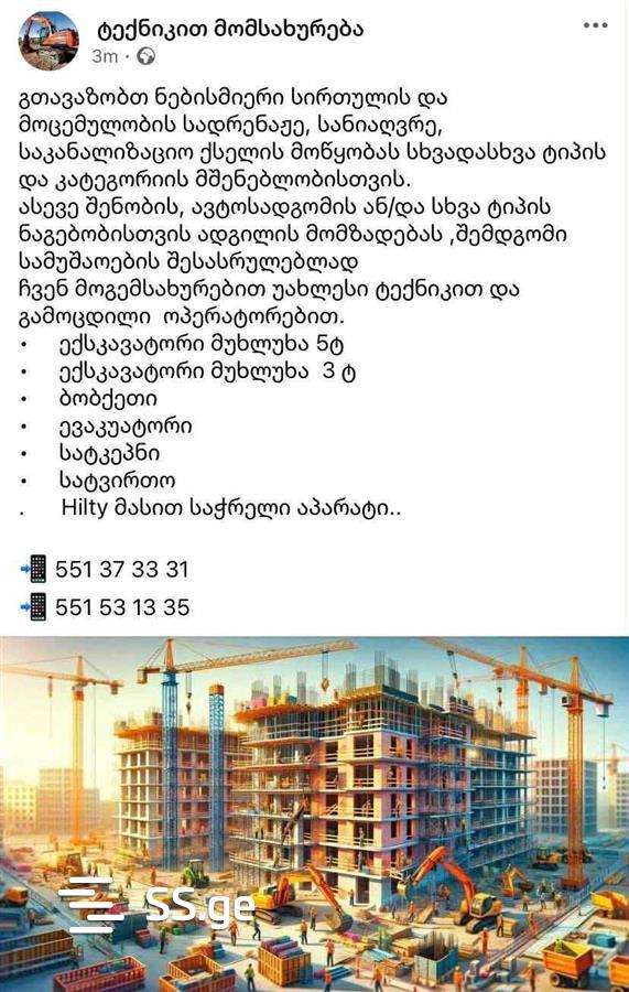 გთავაზობთ სამშნებლო ტექნიკით მომსახურებას Show original