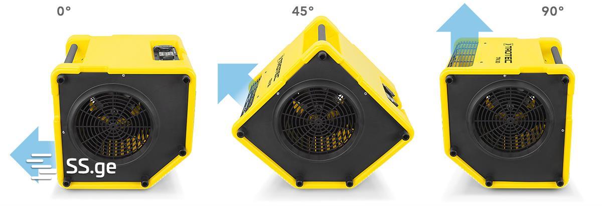 აღჭურვილია ორმაგი ნაკადის ცენტრიდანული ვენტილატორებით ზედმეტად დიდი სპეციალური ლილვით და სპეციალური ფორმის ჰაერის გამოსასვლელი არხებით, შრობის სიჩქარე შესამჩნევად იზრდება. ოთახის ჰაერი ოპტიმალურად ნაწილდება ჰაერის ფართო ნაკადზე, რომელიც წარმოიქმნება მიწასთან ახლოს და ეხმარება ნესტიან ნაკაწრს ან სველ იატაკს.