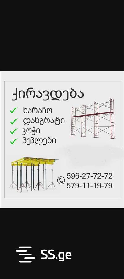 ქირავდება ✅ფასადის ხარაჩო ✅შიდა ხარაჩო ✅დანკრატები დაგრატები ✅პეპლები დამჭიმი ✅ტრანსპორტირება ყველაფერი საუკეთესო ხარისხის საუკეთესო პირობებით. Show original