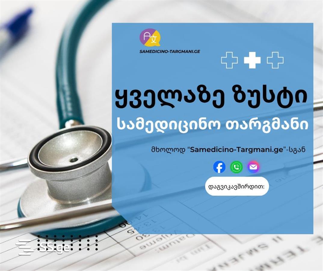 - გჭირდებათ ზუსტი და სანდო გერმანული სამედიცინო თარგმანი? დაგვიკავშირდით ახლავე და მიიღეთ უფასო კონსულტაცია ნებისმიერი ტიპის სამედიცინო დოკუმენტის თარგმნასთან დაკავშირებით: samedicino-targmani.ge ; www.facebook.com/targgmani.ge/ ან დაგვიკავშირდით ნომერზე: