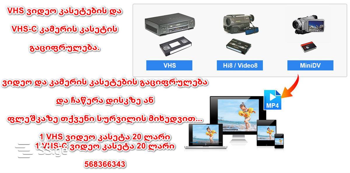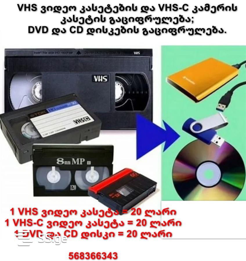 VHS ვიდეო კასეტების და VHS-C კამერის კასეტის გაციფრულება;