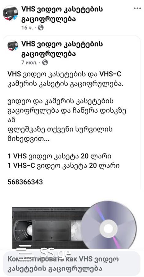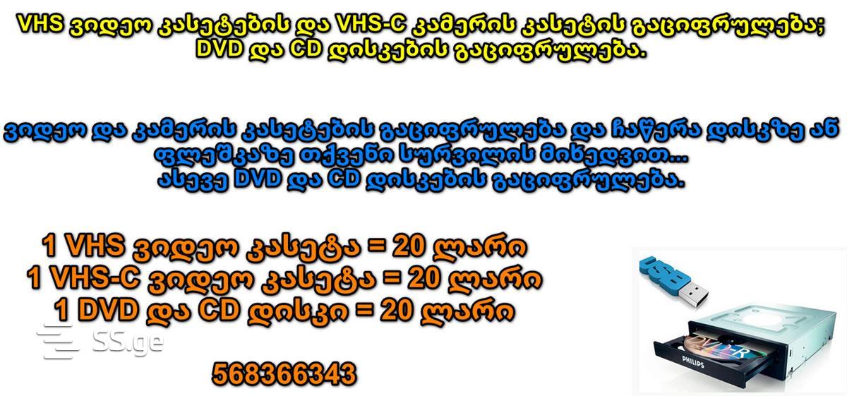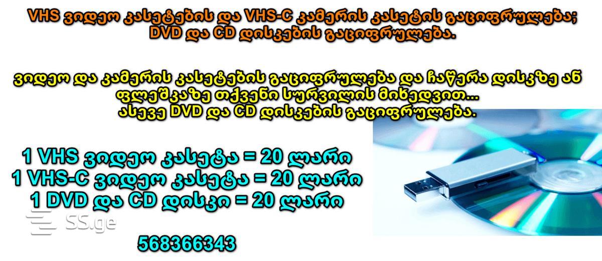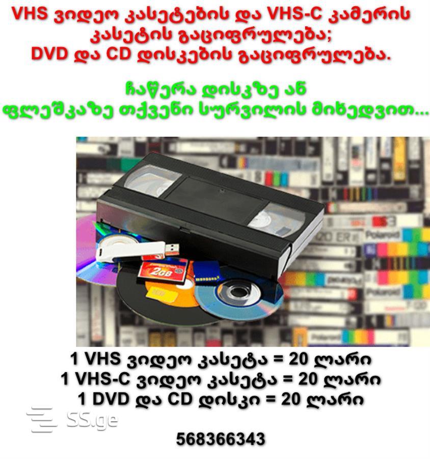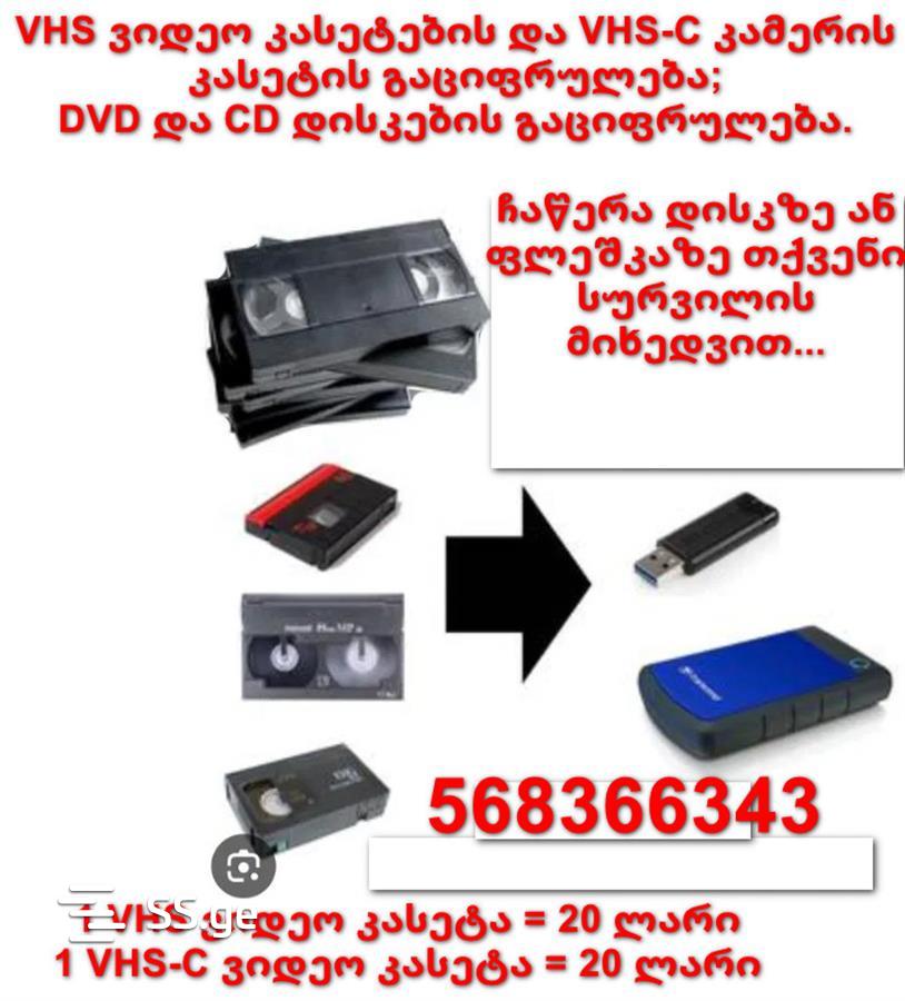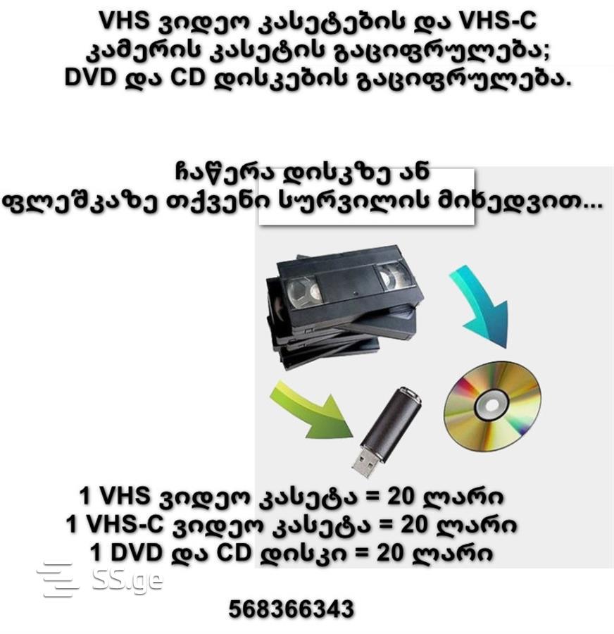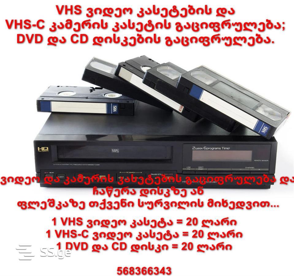 ვიდეო და კამერის კასეტების გაციფრულება და ჩაწერა დისკზე ან