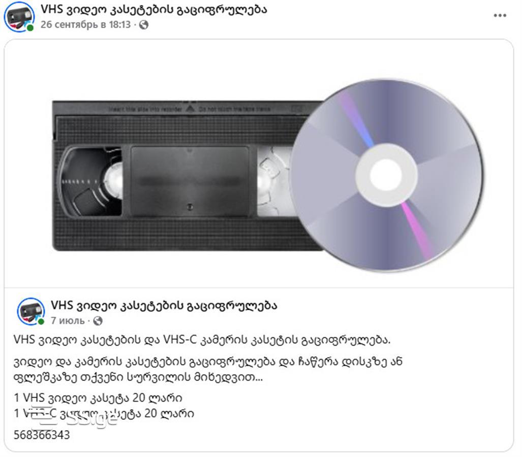 1 VHS-C ვიდეო კასეტა = 20 ლარი