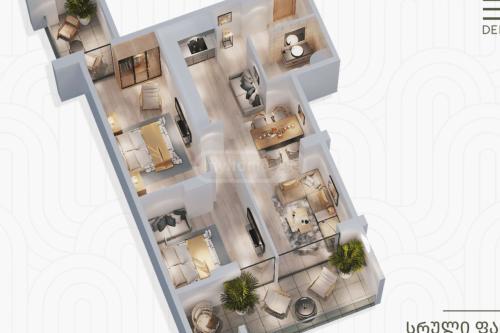 ბინა მდებარეობს 10 წუთის სავალზე წერეთლის მეტროდან. ყველა ოთახი ნათელია და მზიანი. აქვს საუკეთესო ხედი მტკვარზე. ბინა იყიდება საჭირო ავეჯითა და ტექნიკით. კორპუსში ორი ლიფტია: სატვირთო და სამგზავრო. კორპუსს აგრეთვე აქვს საპარკინგე ადგილი.