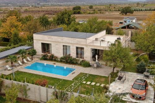 საგურამოში იყიდება ახალაშენებული, უცხოვრებელი სახლი 4 საძინებლით (1 მასტერ საძინებელი აბაზანით და საგარდერობე ოთახით), 3 სველი წერტილით, 1 სამზარეულოს დამხმარე ოთახით და ასევე 1 სამრეცხაო ოთახით. სახლს ააქვს ცალკე მდგომი ტექნიკური შენობა სადაც განთავსებულია ბოილერი და საჭიროების შემთხვევაში დამატებითი სარეზერვო წყლის, ავზები როგორც შიდა ასევე საირიგაციო მოხმარებისთვის.სარემონტოდ გამოყენებულია მხოლოდ ევროპურლი წარმოების მაღალი ხარისხის მასალები, ფილები და აბზანის ფურნიტურა დიზელი, ვენეტო დიზაინი და ა.შ., ტექნიკა SMEGი, ავეჯი ვერონა, სალოტი და ა.შ. ასევე სახლში ყველა ჩაშენებული ავეჯი და შიდა კარები დამზადებულია უმაღლესი ხარისხის შეღებილი MDFით. აუზი სრულად აჭურვილია ტექნიკურად და ასევე აქვს წლის გათბობის სისტემა. ეზოში დაგებულია კოინდარი და აღჭურვილია სარწყავი სიტემით. სახლის საეთო ფართია 300 კვ.მ. ეზო 600 კვ.მ.