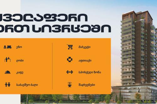 ბინა 59 მ²Krtsanis Resort Residence განლაგებული 20 ჰექტარი მიწის ნაკვეთზე, თბილისის ისტორიულ და პრესტიჟულ ნაწილში კრწანისში. თავისუფლების მოედნიდან სულ რაღაც 6 კმში და აეროპორტიდან 17 კმის დაშორებით. ქალაქის ბრწყინვალე პანორამული ხედები. პროექტის ტერიტორიის 70% უკავია რეკრეაციულ ზონებს, მათ შორის საცურაო აუზებს, ფიტნეს ცენტრებს, მინი გოლფის მოედანს, ჩოგბურთის, პადელ ჩოგბურთს, ასევე ფეხბურთის და კალათბურთის მოედნებს. პროექტი ასევე მოიცავს საგანმანათლებლო სივრცეს და კომერციულ შენობას ჰიპერმარკეტით, კაფეებით, სალონებით, მაღაზიებით, ოფისებით, დახურული აუზითა და ფიტნეს ცენტრით.ისარგებლეთ გარანტირებული შენაძენით, უძრავი ქონება დაზღვეულია საქართველოს ბანკში. იპოთეკური სესხი გამარტივებული პროცედურებით.