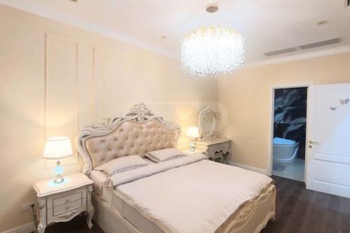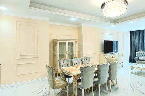 280 კვ/მ ბინა, 8ე სართულზე, ჯამში ოთახების რაოდენობა არის 7. საძინებლების რაოდენობა 5, ყველა საძინებელს აქვს თავისი სველი წერტილი, ორ საძინებელს აქვს თავისი მისაღები ოთახი. საერთო მისაღები 45 კვ.მ. სამზარეულო 25 კვ.მ. ოთხ საძინებელს აქვს თავისი აივანი. გათბობის ცენტრალური სისტემა და ბოილერი. ბინა იყიდება ავეჯით, ტელევიზორებით.