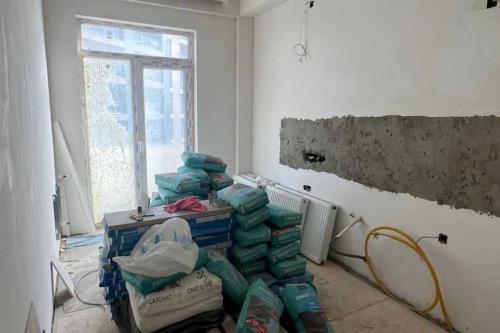 დაახლოებით 5 წელია რაც დასრულდა მშენებლობა. ბინა თითქმის გარემონტებულია დარჩენილია მხოლოდ სამღებრო სამუშაოები (ჭერი ყველა ოთახში შეღებილია, ხოლო კედლები დაშპაკლულია და მიყვანილია შეღებვის ან შპალიერის გაკვრის კონდიციამდე). 30-40% კაფელი და მეტლახი ბინაში დაგებულია.ბინაში არის ყველა საჭირო მასალა, რაც რემონტის დასასრულებლად არის საჭირო