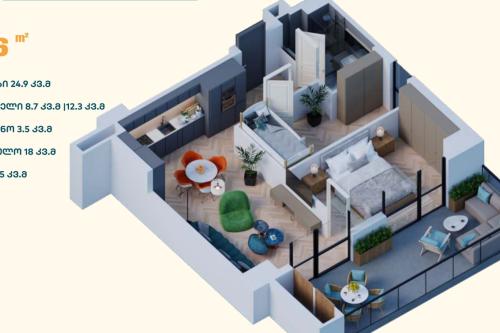 ბინა იყიდება ავეჯით და ტექნიკით ( მაცივარი, სარეცხი მანქანა, კონდეციონერი, ტელევიზორი, გაზქურა) სადარბაზისთან მისასვლელი ანტონოვსკაიას ქუჩიდანაც