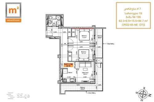 იყიდება 58 მ2 ბინა მირცხულავას ქუჩაზე M2 ის კომპლექსში. 6 კორპუსში
