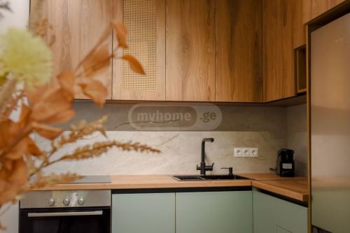 ბინა მდებარეობს ალექსანდრე იოსელინის ქუჩაზე პოლიტკოვსკაის ქუჩის ბოლოს, წყნარ და მშვიდ ადგილას, ახალაშენებული, ხუთსართულიანი სახლის პირველ სართულზე იზოლირებული და მყუდრო ეზოთი. ბინა მოწყობილია ეკოლოგიურად სუფთა მასალებით, გამოყენებულია ბუნებრივი ხე და ქვა. სრული ფართი შეადგენს 100 კვ.მ. სახლის შიდა ფართი 59.2 კვ.მია, ეზოს ფართი 40.8 კვ.მ. ბინაში რჩება ავეჯი:1. იზოლირებული სამზარეულო ნატურალური ხისგან აწყობილი ფურნიტურა, ჩაშენებული გაზქურა,გამწოვი და ჭურჭლის სარეცხი მანქანა + მაცივარი;2. მისაღები, საერთო ოთახი კომფორტერის გასაშლელი დივანი, ხის მაგიდა სკამები, 4K გამოსახულების 75D ტელევიზორი + ხის ტუმბო;3. 2 საძინებელი საბავშვო და ორსაწოლიანი ლოგინი ხის კომბინირებული კომოდით4. სანკვანძი, აბაზანა ჩაშენებული უნიტაზი, ცალკე მდგომი ვანა+მინის საშხაპე კაბინა, ნატ. ხის ფურნიტურა და სარეცხი მანქანა.5. ეზო მოპირკეთებული დეკ. ფილებით, გარე ავეჯი, გამწვანება, საქვაბე კაბინა.