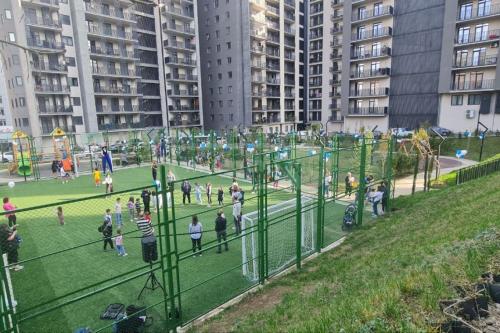 იყიდება 2 ოთახიანი ბინა პრემიუმ კარკასის კონდიციით, რაც მოიცავს: შესასვლელი რკინის მასიური ცეცხლგამძლე კარი მდფ მოპირკეთებით ალუმინის უმაღლესი ხარისხის კარ-ფანჯარა ტიხრები აშენებული პროექტის მიხედვით და გალესილი გიპერით მოჭიმული იატაკი 8 სანტიმეტრიანი პემზის მოწყობით და ქვიშა ცემენტის ხსნარით აივანი მოპირკეთებული გრანიტით/ლამექსით გათბობის საქვაბე ოთახი , გაჟონვის რელე და სმარტ კოლექტორული სისტემები მეტალოპლასტიკის იტალიური გათბობის მილები დაქსელილი დგარებიდან სველ წერტილებამდე და საქვაბე ოთახამდე წყალგაყვანილობა დაქსელილი დგარებიდან სველ წერტილებამდე და საქვაბე ოთახამდე კანალიზაცის დგარები დამონტაჟებული ელ-გაყვანილობის წერტილები მოწყობილი გარე ფასადი (თბოიზოლაციის უმაღლესი კოეფიციენტით) სრულად მოპირკეთებული ჰიპერმარკეტი აგროჰაბი 1470 კვ.მ ფართობის ჰიპერმარკეტი, რომელიც საცხოვრებელი კომპლექსის პირველ სართულზეა განთავსებული და მასთან ერთად მეორე სართული აერთიანებს აგროჰაბის კაფეს. პარკინგი 100 ავტომობილზე გათვლილი პარკინგის სივრცე ტერასა და კაფეტერია მესამე სართულზე ტერასა განთავსდება, რომლის საერთო ფართი 540 კვ.მ იქნება. საცხოვრებელი კომპლექსის მაცხოვრებლებს საშუალება ექნებათ ისარგებლონ გამწვანებული სივრცეებითა და დასასვენებელი ზონით. ტერასა გააერთიანებს კეთილმოწყობილ საბავშვო სივრცესა და იტალიურ-აზიურ სამზარეულოს. სპორტ დარბაზი ჯანსაღი ცხოვრების წესი და მობინადრეებზე ზრუნვა ჩვენი პრიორიტეტია. სწორედ ამიტომ, კომპლექსის მესამე სართულზე განთავსებული იქნება სპორტული დარბაზი.