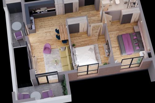 ბინა არის არქის, მეტროსთან 2 წუთის სავალზე, კარფურის თავზე. აქვს კუთხის აივანი ორივე საძინებლიდან იზოლირებული გასასვლელით და მისაღებიდან გასასვლელით