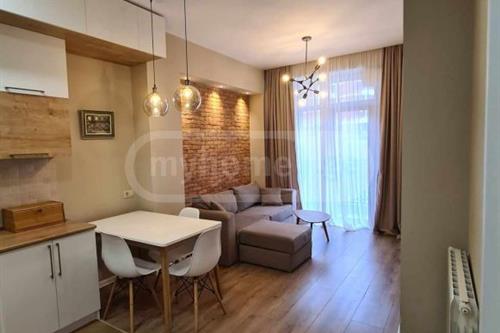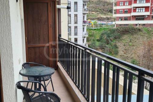 2 ოთახიანი ახალი გარემონტებული, ავეჯით და ტექნიკით. 1 საძინებელი დიდი ჩაშენებული კარადით, წინ სარკეები. 1 სრულად მოწყობილი სველი წერტილი + სარეცხი მანქანა. სტუდიოს ტიპის ჩაშენებული სამზარეულო (მაცივარი, მიკროტალღური ღუმელი, გაზქურის ზედაპირი, გამწოვი, ტელევიზორი, კონდიციონერი). აივნიდან იშლება შესანიშნავი ხედი წყნეთის მთებზე. ბინა მდებარეობს პოლიტკოვსაიას ქუჩაზე, მაგთის ოფისთან ახლოს. მეტროდან 600 მეტრში.