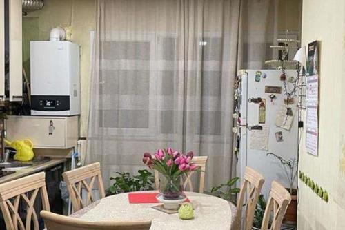 ქირევდება 3 ოთახიანი ბინა მეტრო დელისთან, (2 ოთახიანი მიშენებით: 3 ოთახი + ლოჯი, სულ 4 ოთახი, საერთო ფართი - 85კვმ). 2 საძინებლით, რკინის კარით; მაცივარი, სარეცხი მანქანა, კონდიციონერი, ცენტრალური გათბობა.