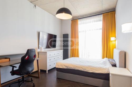 ქირავდება ახალი, უცხოვრებელი დამოუკიდებელი 1 საძინებლიანი ბინა, სტუდიოს ტიპის მისაღებით, ჩაშენებული სამზარეულოთი, დიდი აივნით, ცენტრალური გათბობით, ტექნიკით, ყველანაირი ავეჯით, მე8 სართული მ3 საბურთალოს კომპლექსში. კომპლექსი აღჭურვილია თანამედროვე ინფრასტრუქტურით.