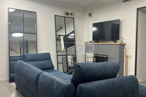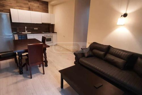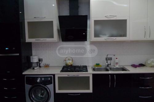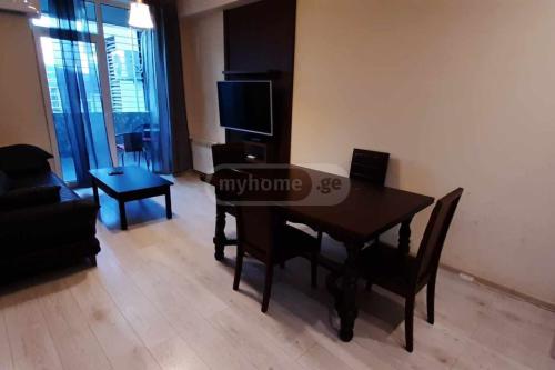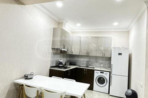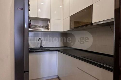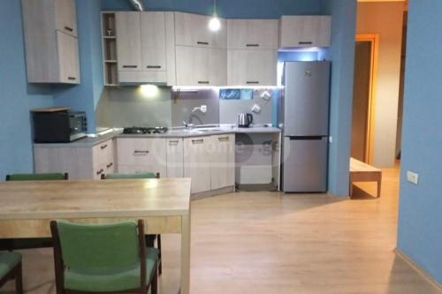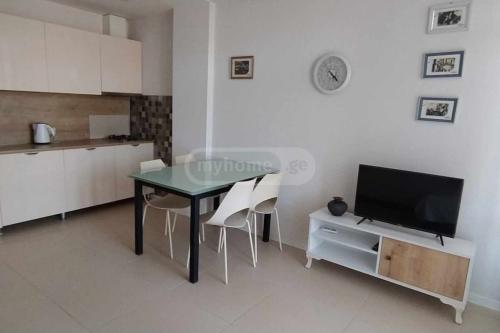 კუთხის ნათელი ბინა ავეჯით და ტექნიკით იზოლირებული სამზარეულოთი