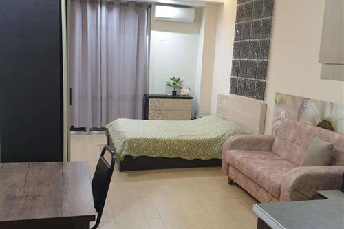 Продается однокомнатная квартира-студия площадью 40 квадратных метров в новом доме на улице Руставели в центре города. С балконом, мебелью, прекрасным видом на море и горы. Расстояние до моря 350 метров. До моря можно добраться за 350 метров.