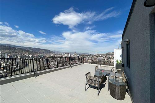 Продается квартира 201м2 с новым ремонтом, нежилой пентхаус, в жилом комплексе бизнес-класса Hiltop Green. В квартире: веранда, балкон, 6 комнат, 3 спальни, тренажерный зал, гардеробная, техническое помещение, звукоизоляция потолка и пола; Центральный индивидуальный климат-контроль помещений, подогрев пола; Функциональный электрокамин премиум качества; На верхнем этаже здания (8-й) находится благоустроенная зеленая веранда с панорамным видом на Тбилиси. На веранде есть детская зона, различные зоны отдыха, шезлонги, мангал; бассейн. Цена: $380 000. Площадь: 201 м2
