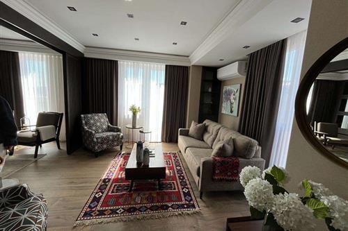 На проспекте Чавчавадзе продается недавно отремонтированная квартира с 2 спальнями в строящемся комплексе JDji. Полностью меблированная, красивая, нежилая квартира, со свежим ремонтом, мебелью, техникой, на 11 этаже 18 эт. Цена: 650 000 долларов.