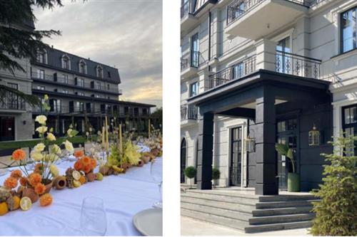Площадь участка- 6300 кв.м Площадь застройки 4200 кв.м Количество-59 Открытые и закрытые бассейны Это СПА, массаж, сухая и паровая сауна, расположенные в отдельном здании, две винные ванны, тренажерный зал, лаунж-бар на 60 человек; главный ресторан на 120 человек; ресторан на террасе у открытого бассейна на 100 человек; Ресторан Марани на 50 человек; подвальная терраса на 100 человек; конференц-зал на 120 человек; концертная площадка на 250 человек; Бильярд винный вестибюль, винодельческая промышленность и кувшины на 16000 литров разного объема; 200 лоз на территории отеля, 40 парковочных мест